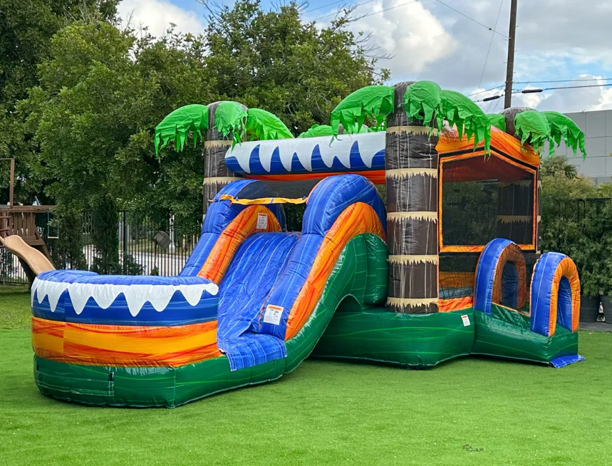 Bring tropical paradise home—bounce, slide, and splash in this island-themed favorite. Dry or wet, transform your backyard into a tropical oasis now!